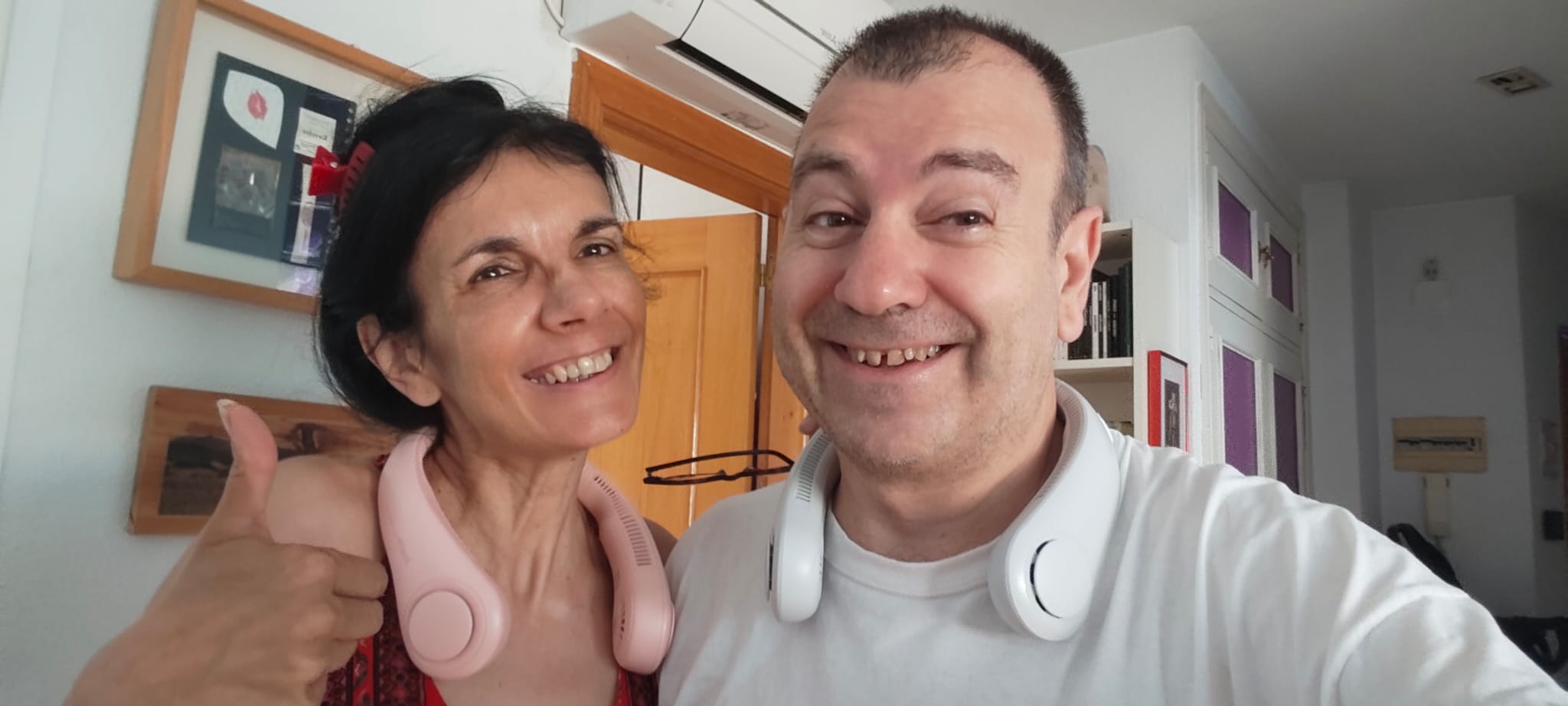Y tras el día en cuestión, terminamos sorprendiéndonos con esta tecnología tan ultramoderna como un ventilador, pero que parece un par de auriculares. Es más, seguramente el siguiente «modelo» incorporará más tecnología, así ese ventilador podría incluir un teléfono, a la par que auriculares, así como, por qué no, una interfaz de inteligencia artificial desde la que controlar, pongamos por caso, la publicación en redes sociales de una imagen banal, como la mayoría. Bromeé con el hecho de que me gustaría modificar mi ADN para incluirlo en mi propio cuerpo: tener, intrínsecamente, la capacidad de autoventilarse no me parece baladí. Lo que hoy es una broma, cualquier día lo veo en la calle en estos tiempos en los que hay personas adscribiéndose a un «movimiento» de transhumanismo, donde la ingeniería genética y la cirugía tecnológica parecen ir ganando terreno dentro de lo que llamamos normalidad.